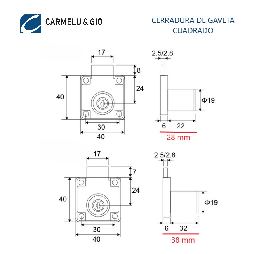 Cerradura de Gaveta Cuadrada