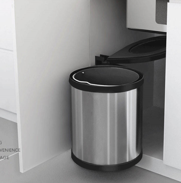 El cesto de basura extraíble lateral de capacidad de 14 litros, es una solución práctica y elegante para mantener la cocina organizada y libre de desorden.