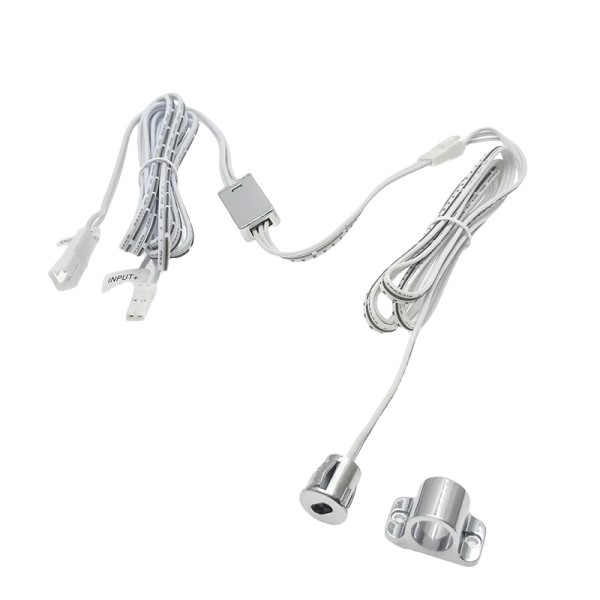 Sensor inteligente con tecnología infrarroja (IR) diseñado para sistemas de iluminación LED de baja tensión. Ideal para instalar dentro de gabinetes, clósets o muebles, permite el encendido y apagado automático de la luz al abrir o cerrar la puerta.