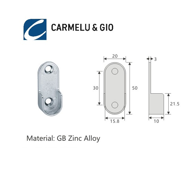 Diseñado para brindar firmeza y estabilidad, este soporte metálico es ideal para la instalación de tubos ovalados 30 x 15mm en muebles para closets.