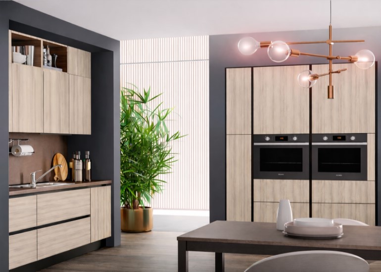 Etiquetas acacia arena, canto PVC, natural elm, roble latino, tapacanto